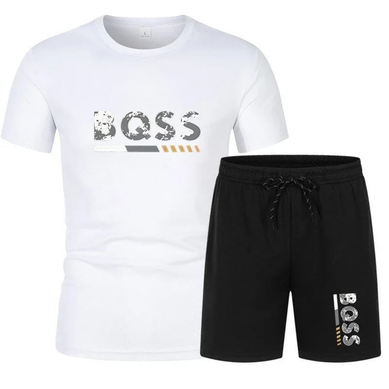 Dvodelni letnji sportski komplet za muškarce koji se brzo suši i ima labav kroj. Sastoji se od kratkih rukava majice sa džepom i crnih šorts. Pogodan za trčanje i vežbanje u toplijim mesecima.
