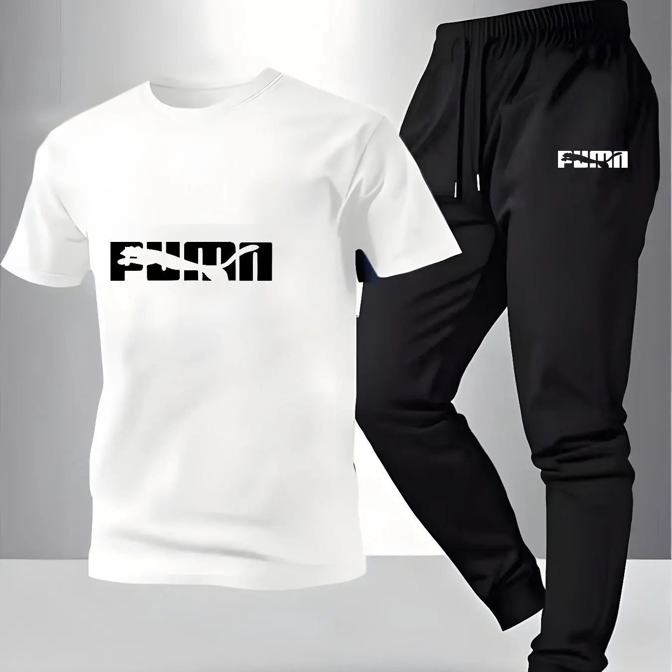 Muški set sportske odeće od prozračnog pamuka sa šarenom štampom na majici i udobnim sportskim pantalonama, idealan za opuštene aktivnosti i vežbanje kod kuće.