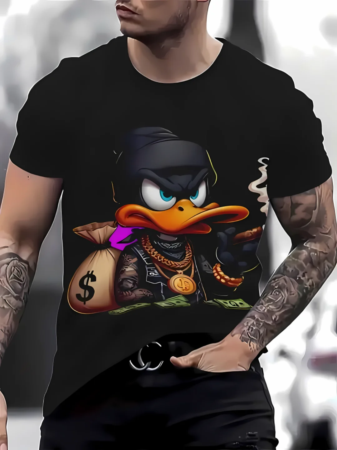 Novo muška majica za leto 2025. sa zabavnim šarenim uzorkom i opuštenim krojem, idealna za tople letnje dane. Ima okrugli izrez i može se nositi u casual prilikama.