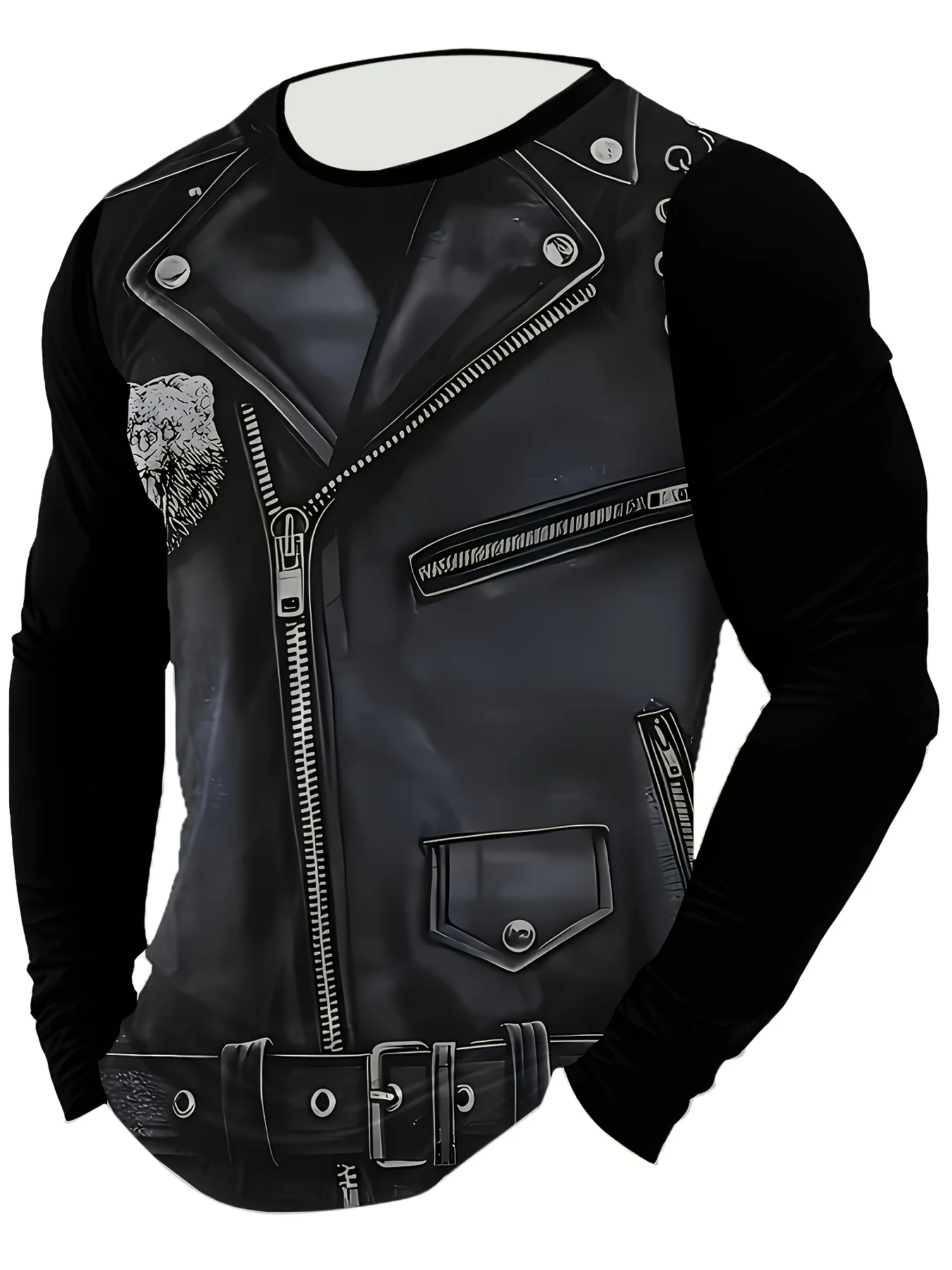 Muška majica sa dugim rukavima sa 3D digitalnim printom, casual dizajna i imitacijom rajsferšlusa i kožnog uzorka. Lagana i prozračna, idealna za svakodnevno nošenje. Savršen izbor za poklon za 2026. godinu.