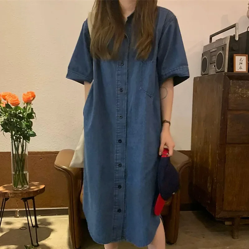 Ova haljina je veoma modernog dizajna, inspirisana retro stilom sa univerzalnim kragom i jednorednim dugmadima. Sa opuštenim krojem i srednjom dužinom, ova haljina je idealna za ležerne prilike. Kratkih rukava, izrađena od džinsa, pruža udobnost i lakoću nošenja tokom toplih dana. Ova haljina će sigurno biti omiljeni komad u vašoj garderobi.