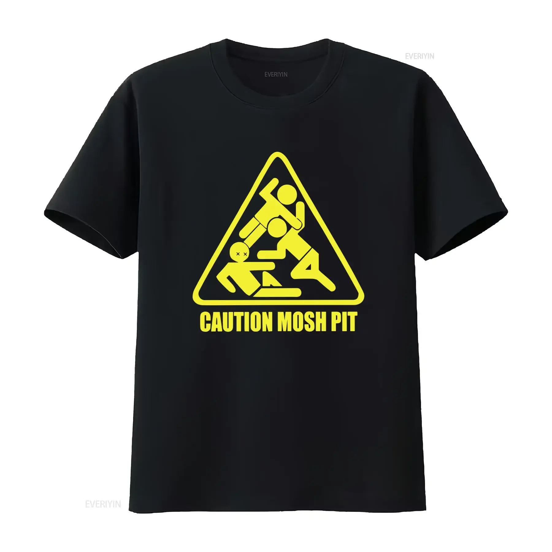 Crna majica sa žutim motivom inspirisana muzikom, savršena za koncerte i ljubitelje vintage stilova.