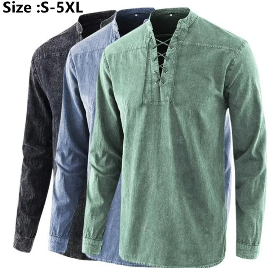 Ova majica velikih veličina je savršena za moderne muškarce koji vole casual stil. Izrađena od mekog materijala, ova majica dugih rukava ima retro dizajn i V-izrez na koji se vezuju srednjovekovne pertle. Savršena je za opušten izgled i udobnost, a dolazi u veličinama 4XL i 5XL. Ova majica će vam pružiti moderan izgled i udobnost u svakoj prilici.