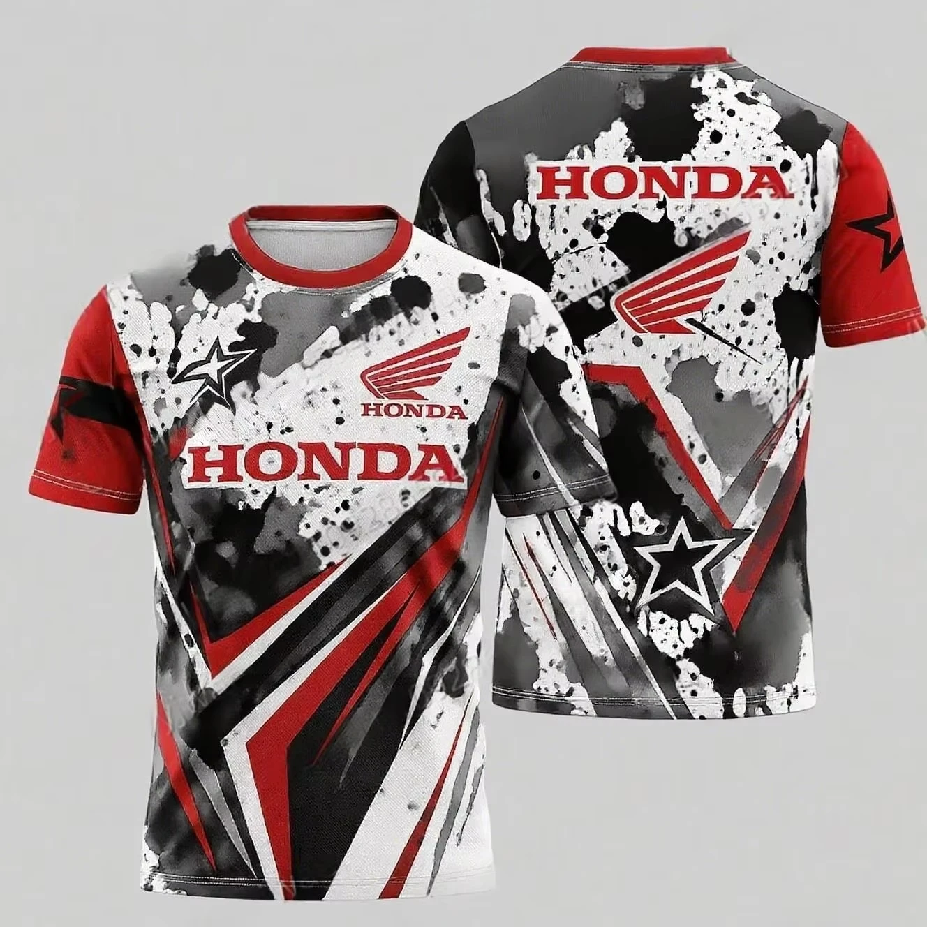 Majica za muškarce i žene koja je idealna za vožnju motorciklom. Izrađena je od brzosušećeg materijala i ima šareni štampu koja podseća na raspršenu boju. Kratkih je rukava i veoma prozračna, što je čini udobnom za nošenje tokom vožnje. Na majici se nalazi Honda logo, što je čini savršenom za ljubitelje ovog brenda.