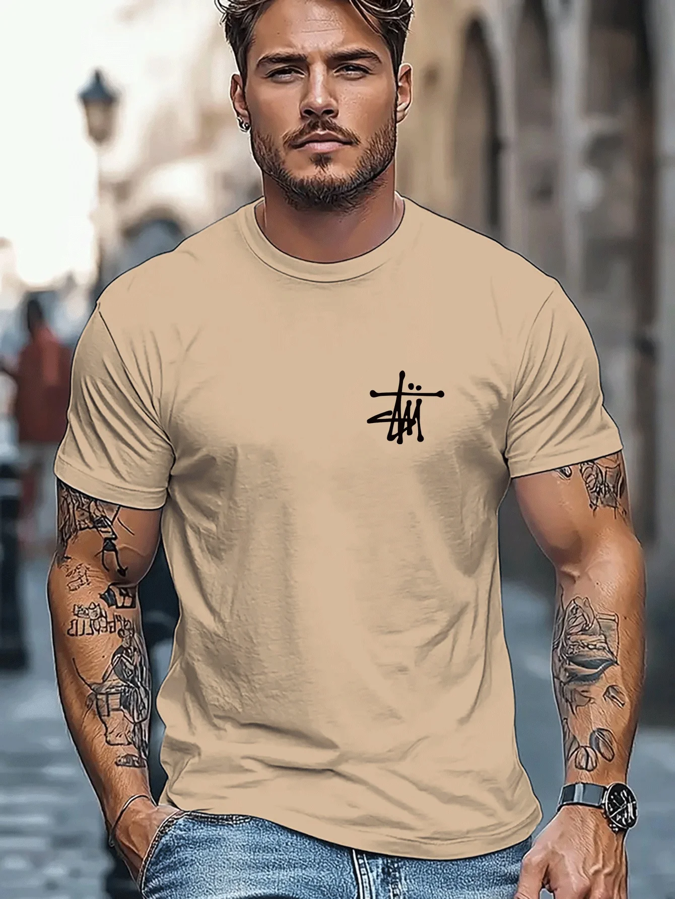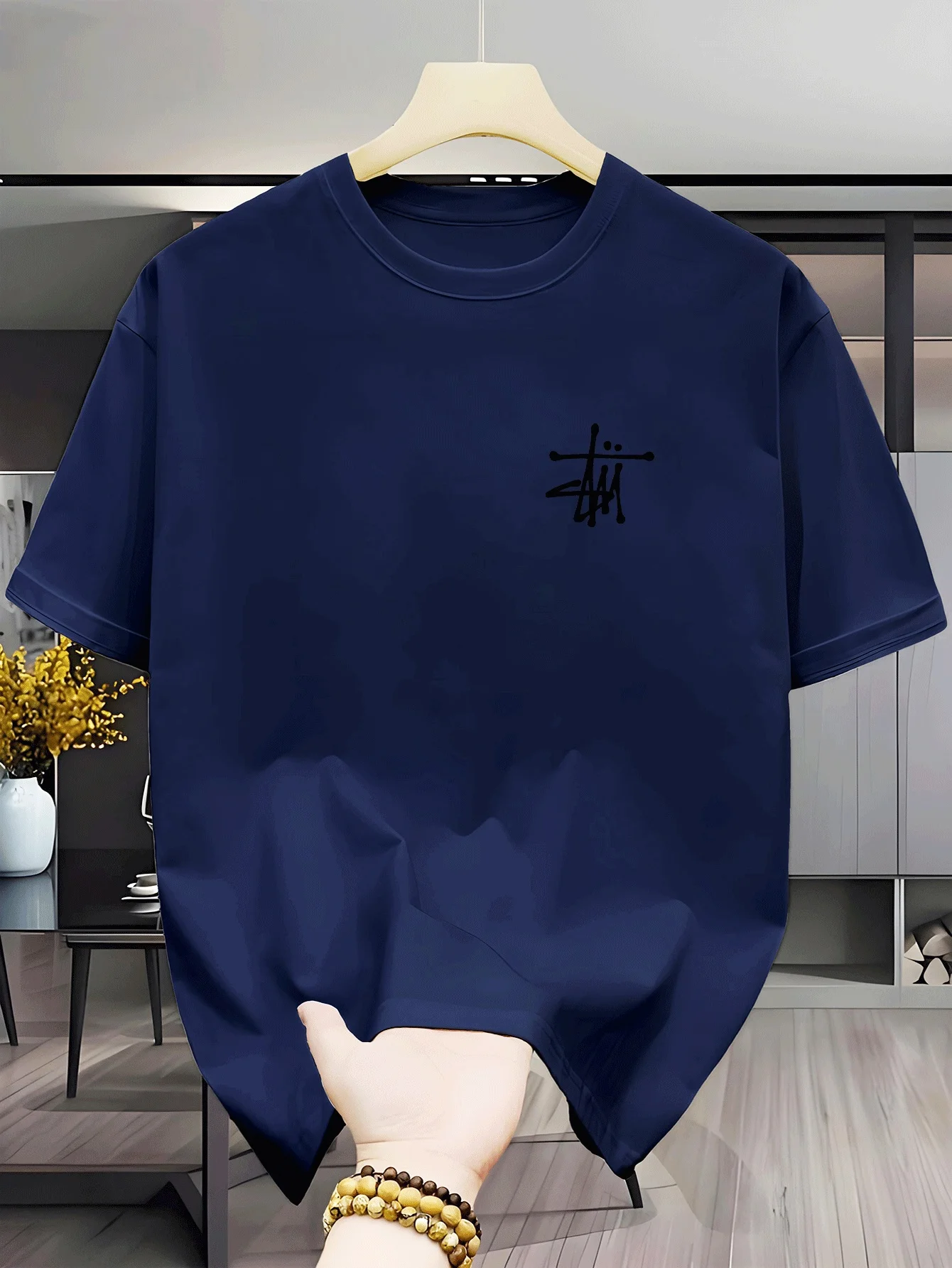Moderna majica za muškarce sa okruglim izrezom, kratkim rukavima i elegantnim završetkom. Izrađena od materijala koji omogućava suvo i udobno nošenje, pogodna za pranje i lako se rasteže. Lagana i u trendu.