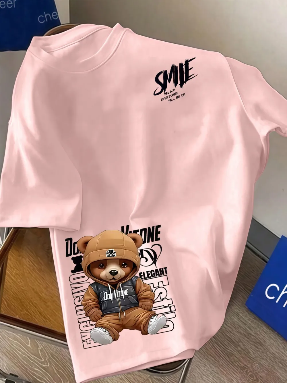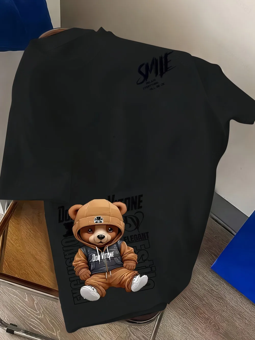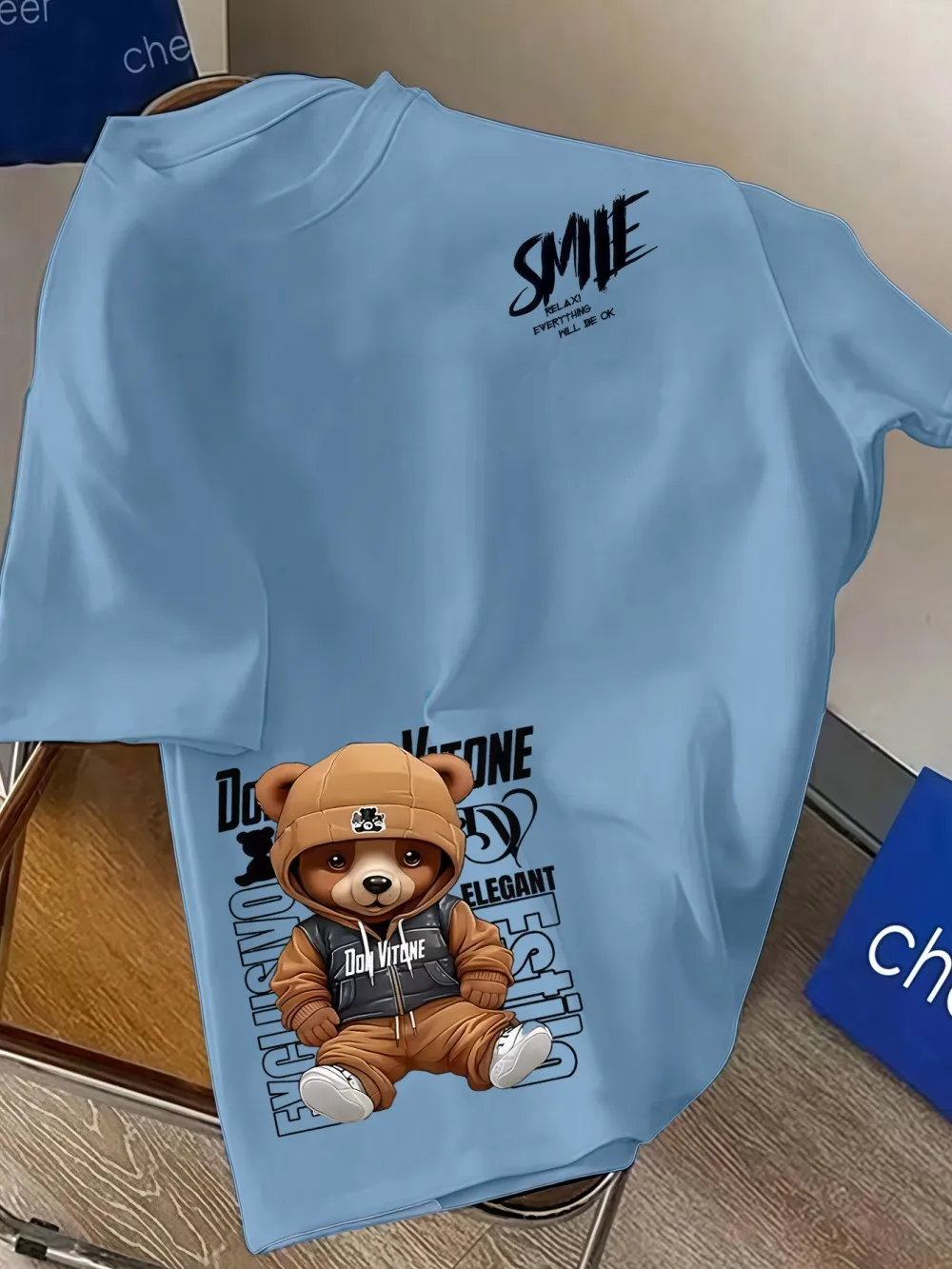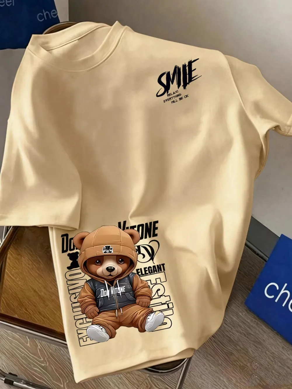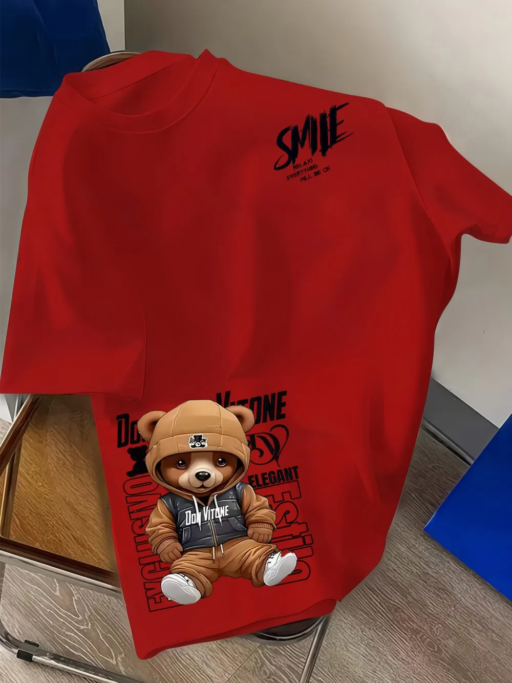 Ova majica je odličan izbor za sve muškarce koji žele da budu moderni i udobni. Sa preslatkim medvedom i natpisom na prednjoj strani, ovaj model je idealan za letnju sezonu. Izrađena od laganih i prozračnih materijala, pruža maksimalnu udobnost tokom nošenja. Svojim okruglim izrezom i casual dizajnom, savršeno se uklapa u različite modne kombinacije za opuštene šetnje gradom ili noćne izlaske. Uživajte u novom letnjem izgledu sa ovom muškom majicom.