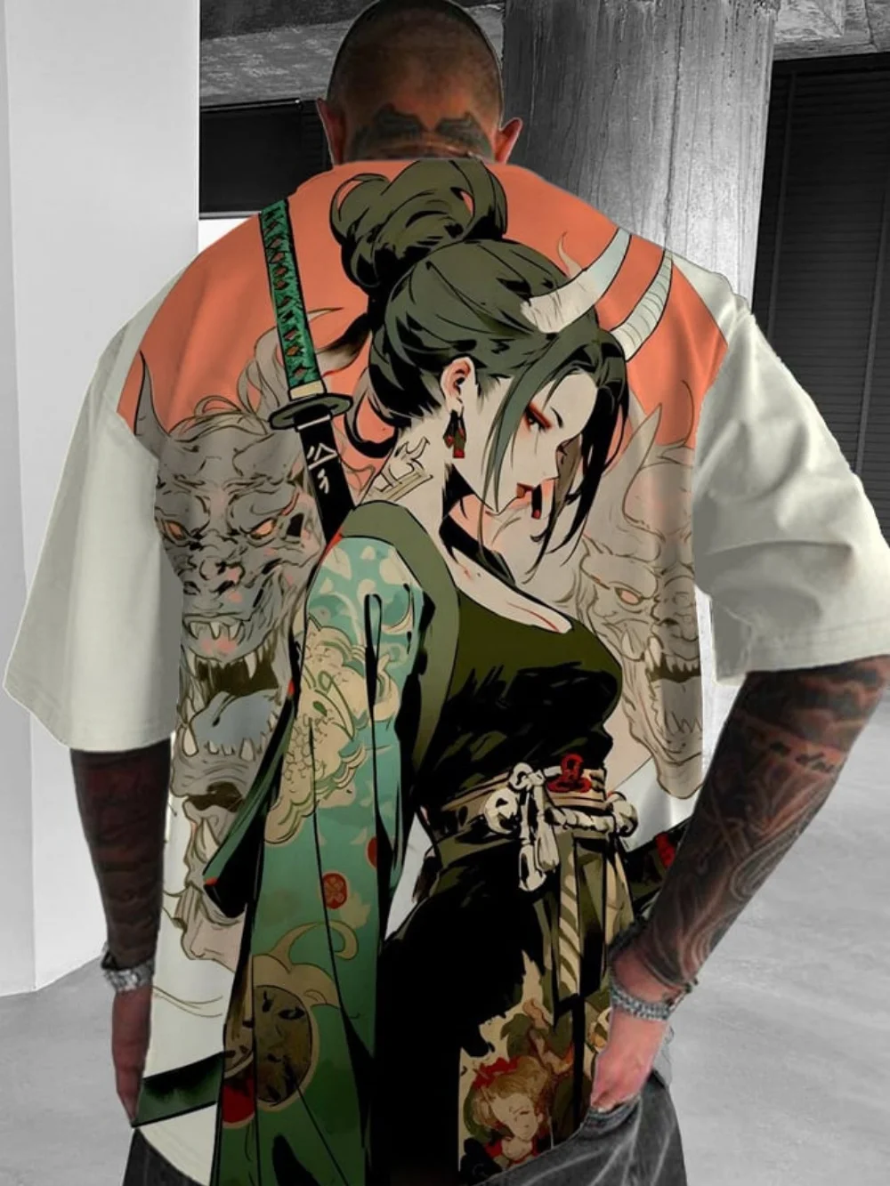Muška i ženska letnja moda sa 3D štampanim japanskim animacijama na majici od poliestera sa okruglim izrezom i kratkim rukavima.