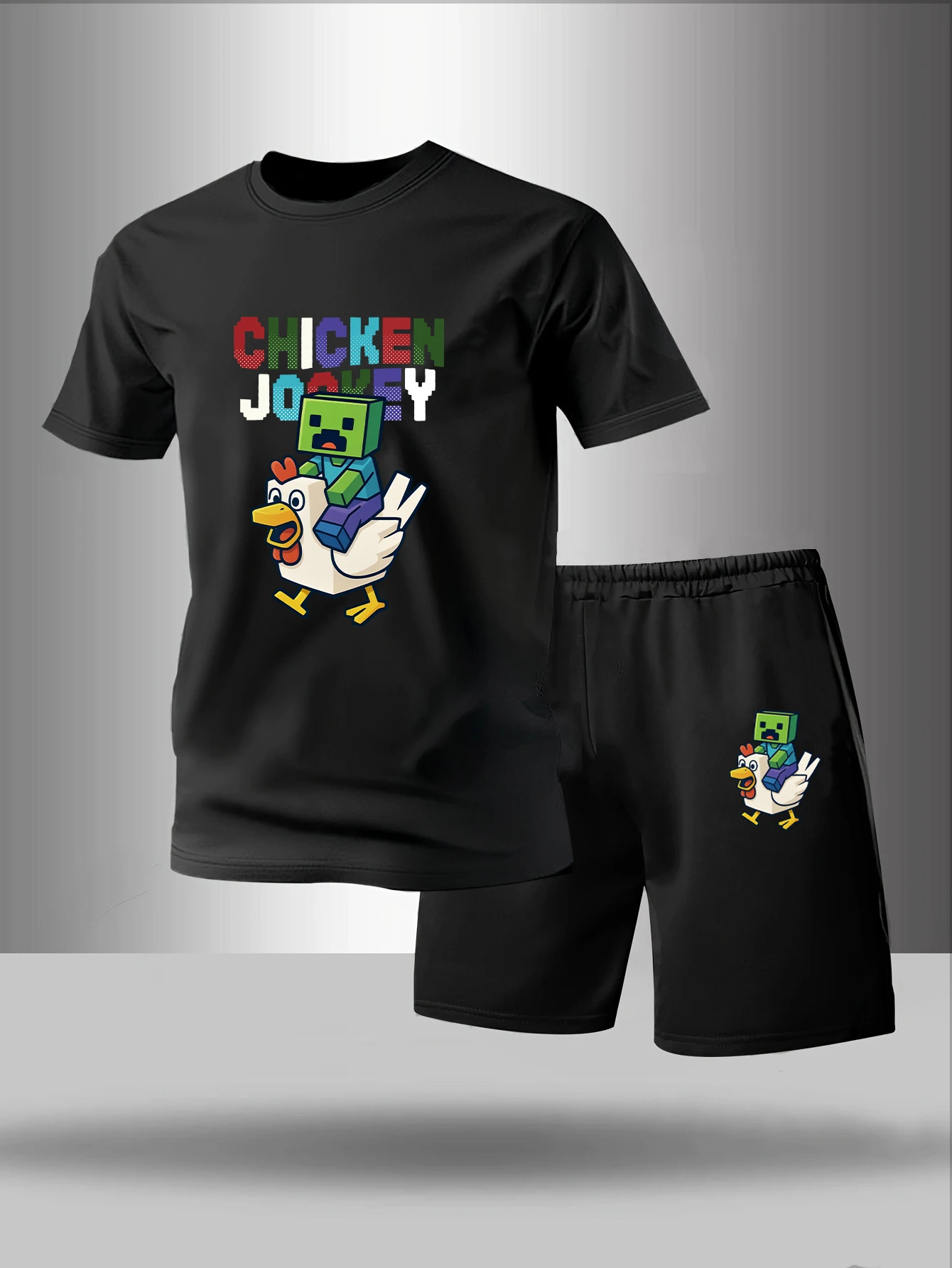 Muški dvodelni sportski trenerka sa kratkim rukavima i crnim šorcem, idealna za letnje aktivnosti i vežbanje. Ovaj set je udoban i modernog dizajna, savršen za sportski stil i opuštene prilike.