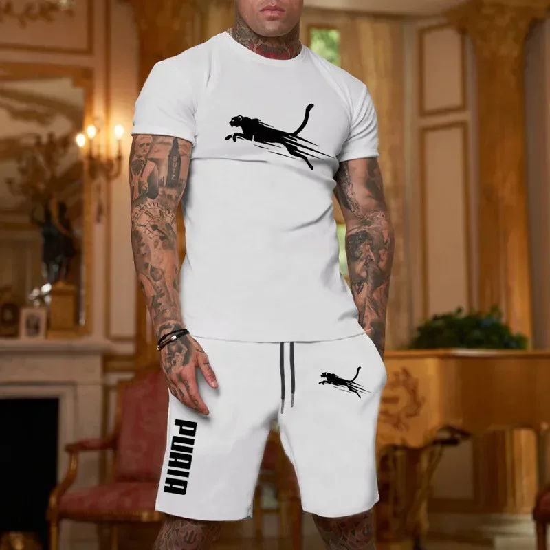 Muški dvodelni set za leto, idealan za sportske aktivnosti na otvorenom i opuštene letnje odevne kombinacije. Uključuje udobnu majicu sa prozračnim materijalom i šorc koji prati poslednje trendove u modi. Savršen izbor za moderne muškarce koji vole da izgledaju stilizovano i udobno u letnjim mesecima.