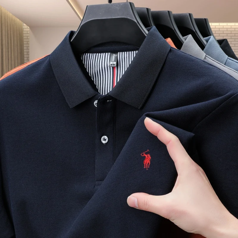 Muška majica sa kratkim rukavima od 100% čistog pamuka za letnju sezonu, dizajnirana za golf sa visokokvalitetnim personalizovanim vezom na kragni u polo stilu.