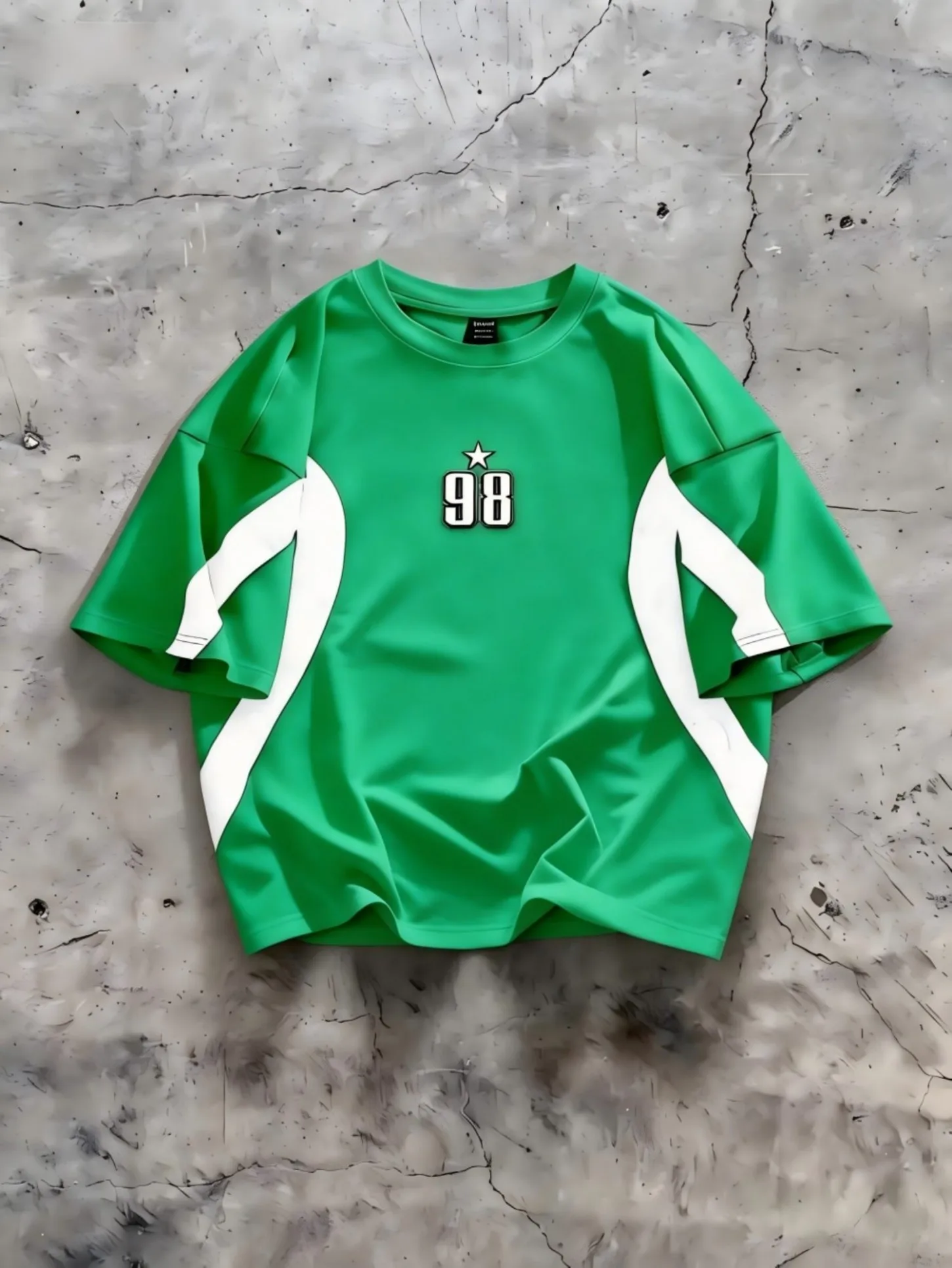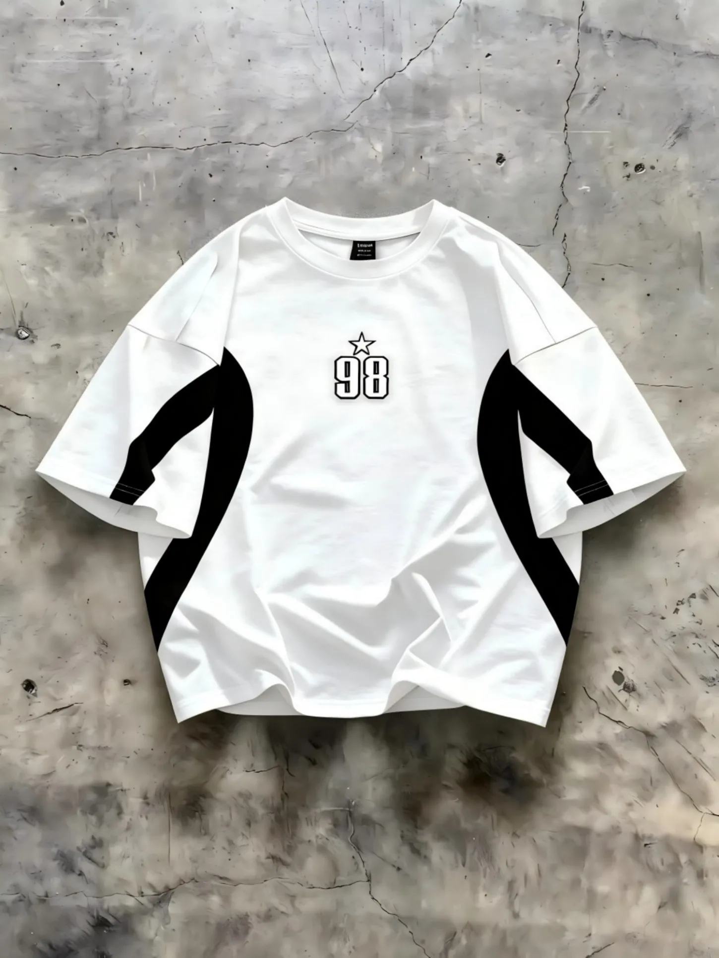 „Muška majica sa prugama i natpisom u evropskom i američkom modnom stilu, idealna za letnje dane. Napravljena od udobnog i prozračnog materijala, sa okruglim izrezom, pogodna za nošenje na otvorenom, u gradu ili na ulici.“
