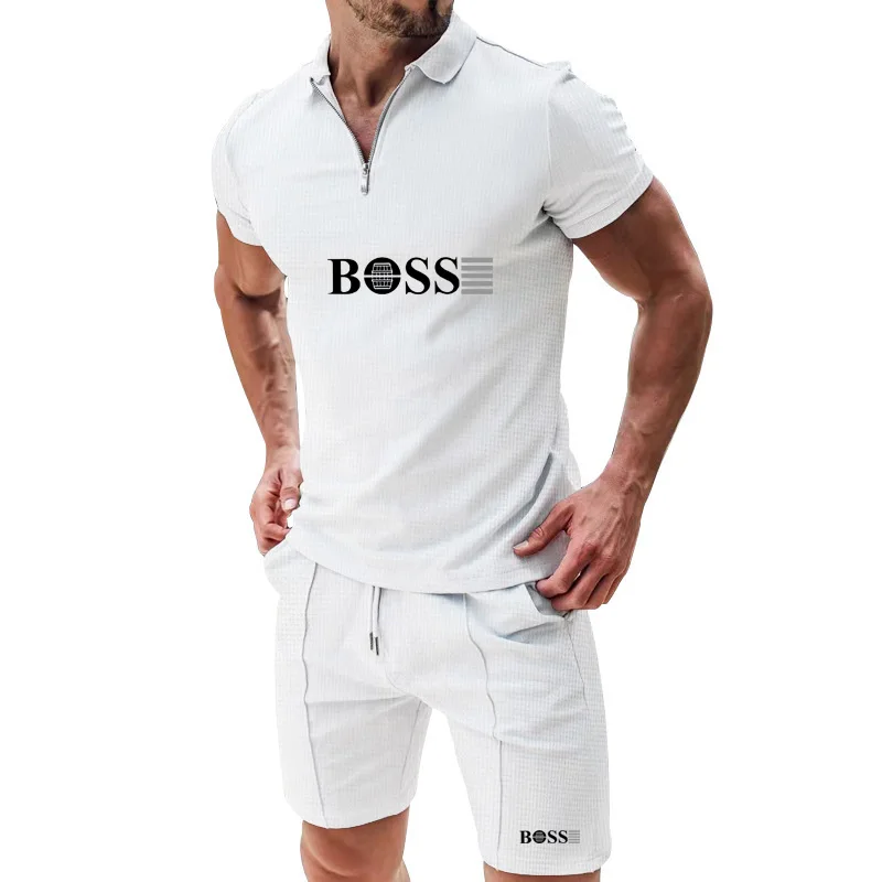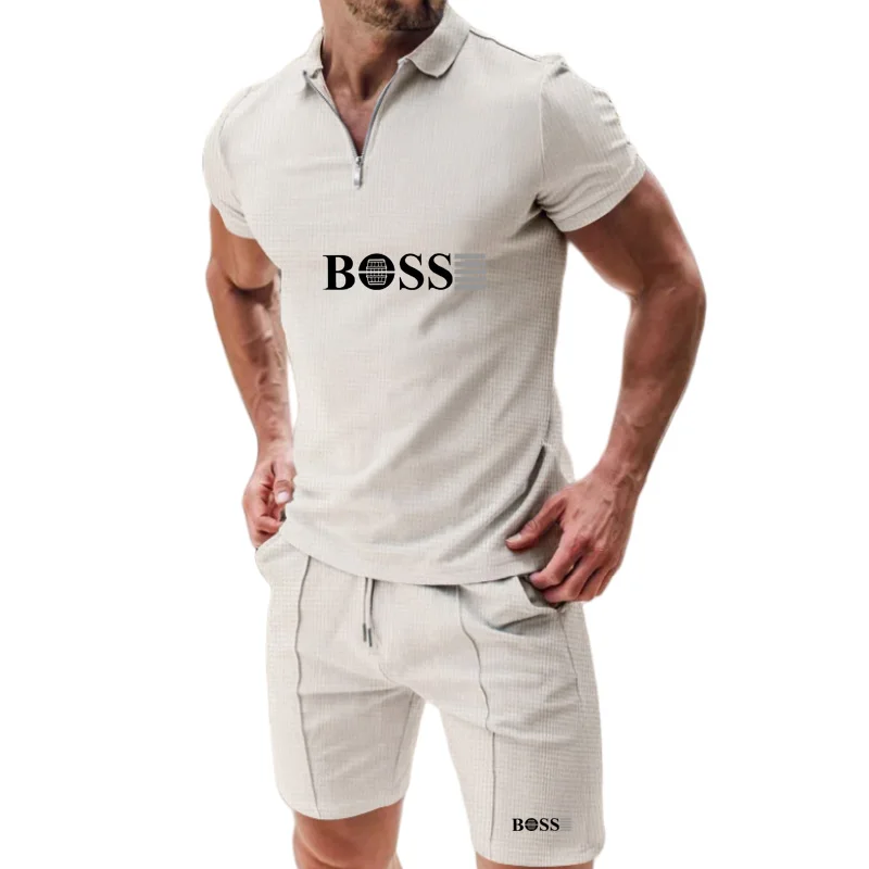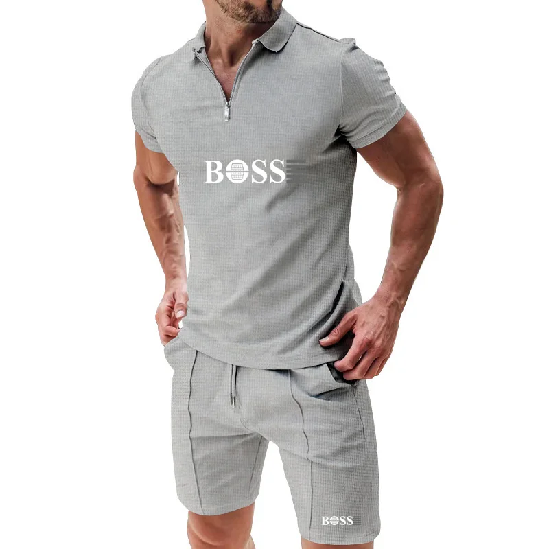 Muška letnja, moderna i udobna sportska majica kratkih rukava sa rajsferšlusom i šorcem za opušteno nošenje u outdoor aktivnostima, u skladu sa poslednjim modnim trendovima.