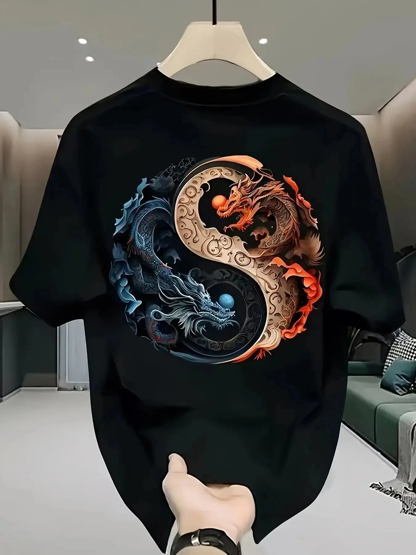 Meko i udobno, ovo novo muško pamučno majica sa Yin Yang uzorkom je savršen izbor za ulični stil ili formalne prilike. Opuštenog kroja i okruglog izreza, ova majica je pogodna za nošenje u svakodnevnim i posebnim prilikama. Uživajte u udobnosti i stilu uz ovu modernu majicu.
