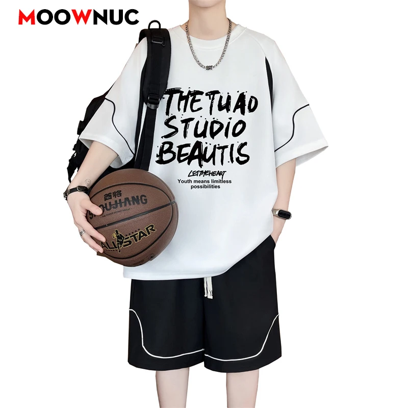 Muški trenerka za svakodnevno nošenje, sa majicom i šortsem, u dva dela. Pogodna za trčanje i sportske aktivnosti tokom leta. Nova letnja kolekcija muške odeće.