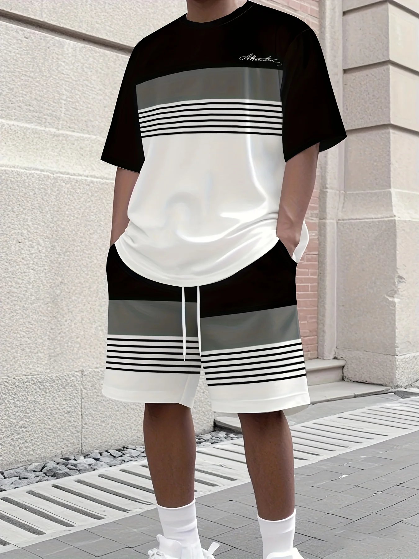 Ovaj muški sportski set sadrži dva dela – majicu sa okruglim izrezom i kratkim rukavima i šorc. Namenjen je muškarcima koji se bave trčanjem i uključuje majicu velikih veličina i letnju majicu za muškarce.