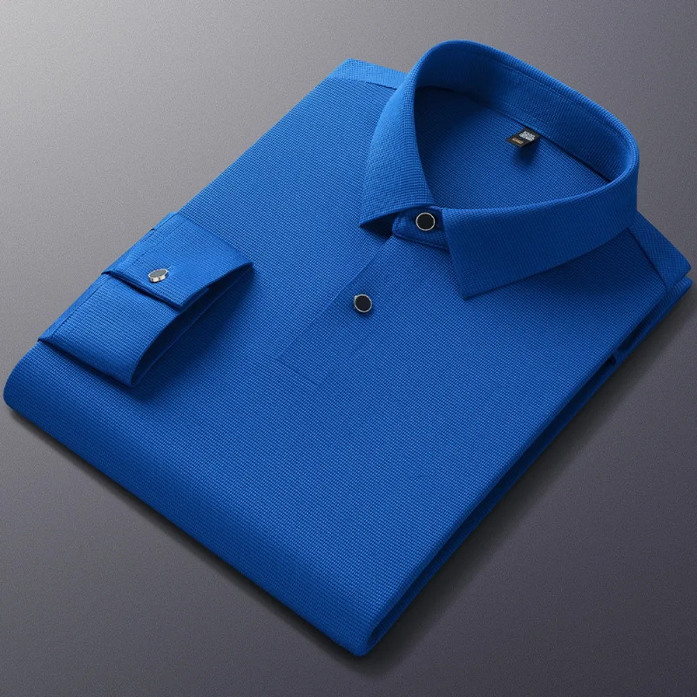 Muška polo majica sa dugim rukavima visokog kvaliteta, bez potrebe za peglanjem. Napravljena od rastezljivog materijala koji se prilagođava vašem telu i može se personalizovati prema vašim željama. Elegantan dizajn u jednobojnoj varijanti čini je idealnom za sve prilike.
