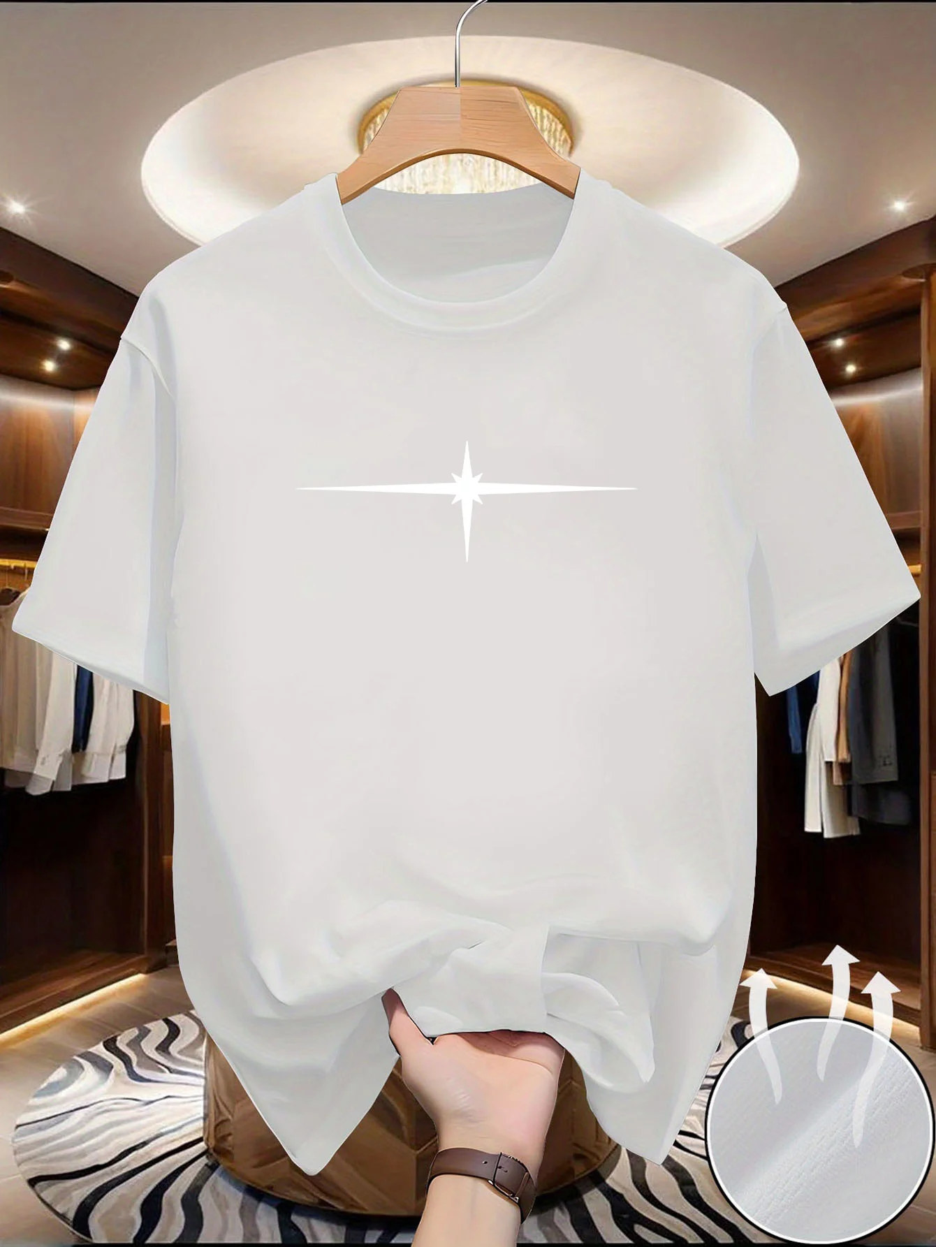 Muška majica kratkih rukava sa okruglim izrezom, prikladna za svakodnevne aktivnosti i slobodno vreme. Napravljena je od prozračnog materijala koji je pogodan za nošenje tokom cele godine, pružajući udobnost i osveženje. Idealna za opušten i udoban stil.