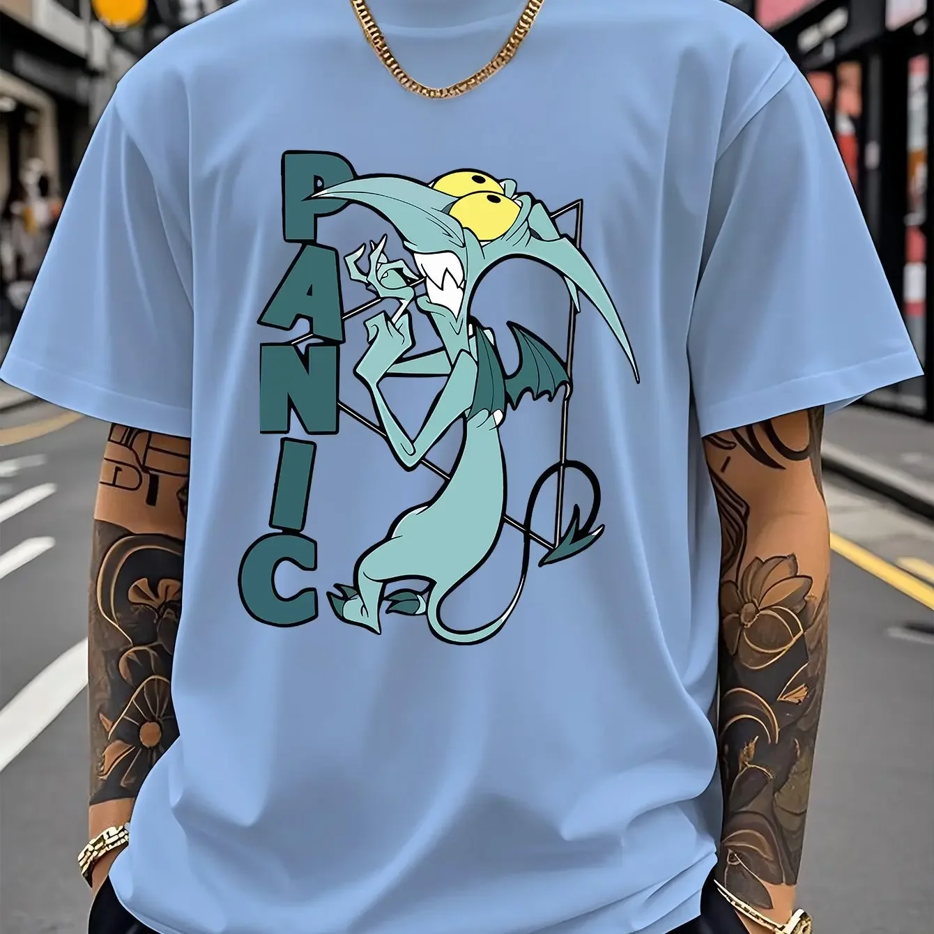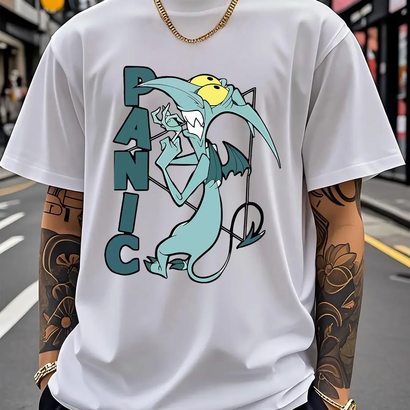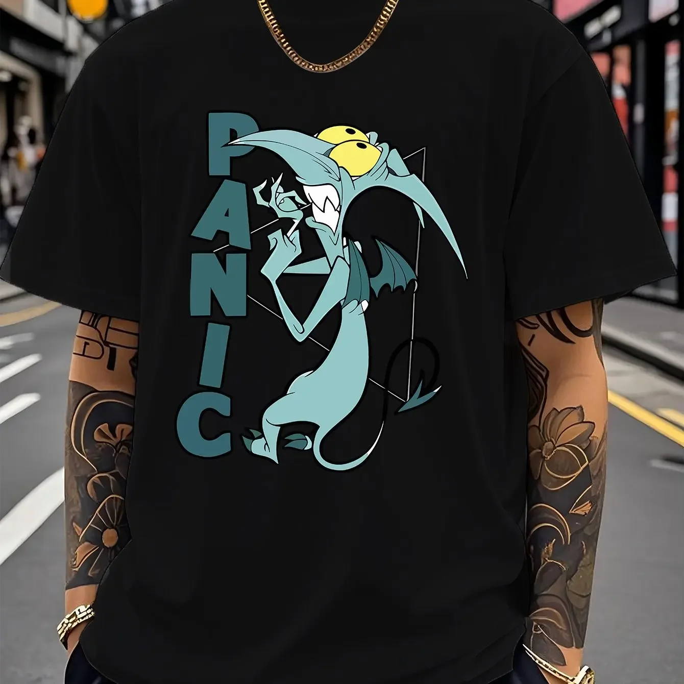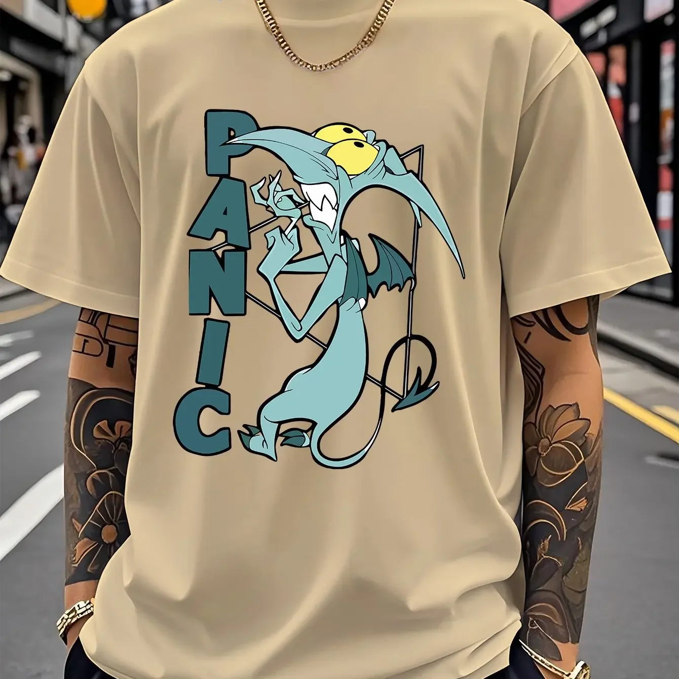 Muška majica sa licencom Diznija koja prikazuje dizajn PANIKE iz filma Herkules. Kratkim rukavima.
