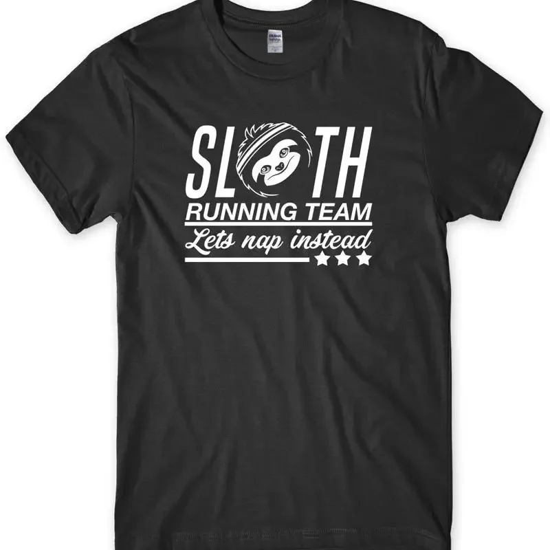 Muška majica sa smiješnim natpisom „Tim sporo trčanje lenjivaca, umjesto trčanja, radije odmor“ koja je prikladna za sve uzraste i oba pola.