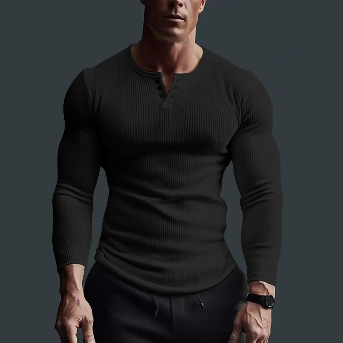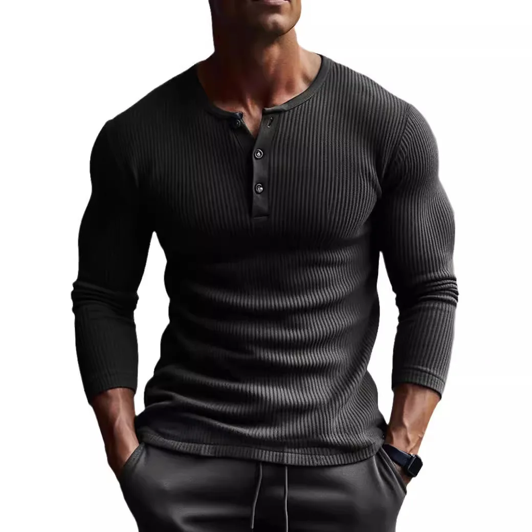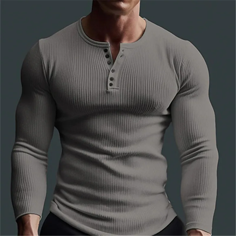 Muška casual Waffle majica za fitnes sa dugim rukavima u jednobojnoj boji, sa modnim V-izrezom i prozračnom tkaninom. Idealna za muškarce koji vole da se bave sportom i imaju aktivan stil života. Savršena za svakodnevno nošenje i kombinovanje sa različitim odevnim komadima.