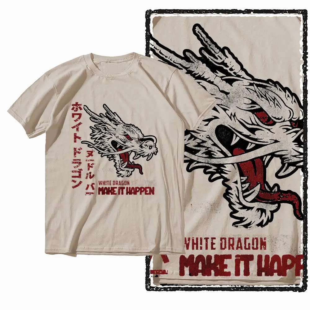 Ova majica je savršen izbor za muškarce koji žele da izgledaju moderno i kul. Izrađena od kvalitetnog pamuka, u neutralnoj bež boji, sa velikom grafikom zmaja na prednjoj strani, ova majica će zadovoljiti i najzahtevnije ukuse. Sa okruglim izrezom, u vintage stilu, ova majica će biti idealna za opuštena i upečatljiva izdanja u ulicama grada. Uživajte u udobnosti i stilu sa ovom majicom koja je u trendu.
